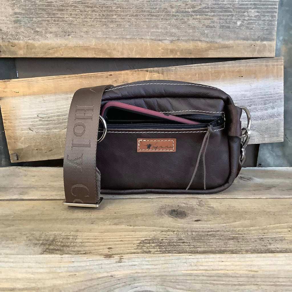 The Western Bum Bag!  With a compact design The Western Bum Bag has the flexibility to be worn as crossbody, on the waist or slung over your shoulder!  Great to be used as a daily carry for all of your daily essentials from your Unisex Wallet to your smart phone.  The Western Bum Bag comes with HCC's signature sporty web strap that is adjustable from lengths 28'' to 43".