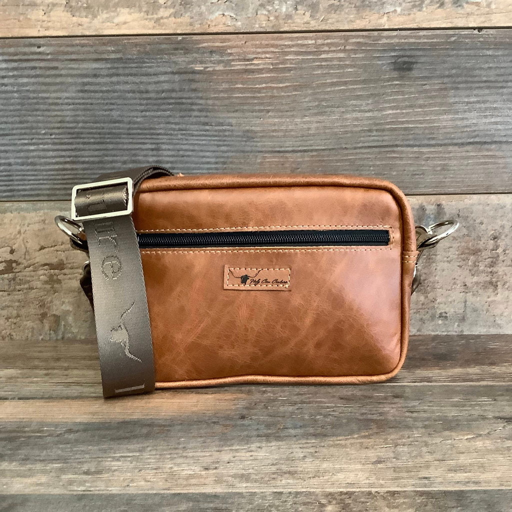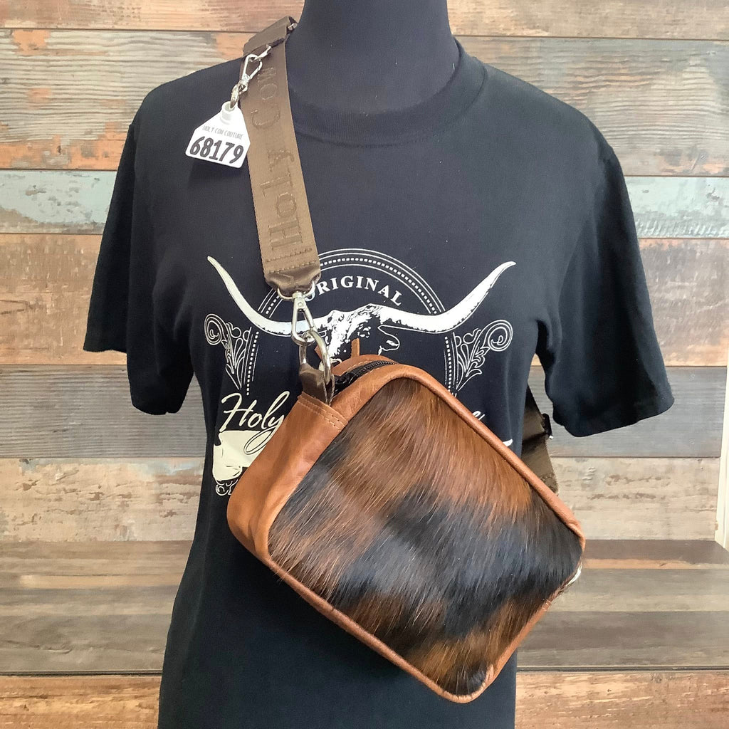 Introducing the Ranch Mama! An upscale version of the classic bum bag, designed for those who appreciate a blend of rustic charm and modern utility. This larger model features a striking cowhide or embossed  panel on the front, framed by our rich leather that speaks to its quality and durability. Its adjustable HCC Sporty strap allows for versatile wear, easily transitioning from a cross-body bag to a waist bag for hands-free convenience. Whether you're gearing up for a day in the city or a casual outing, the Ranch Mama bag offers ample space for essentials, combining style with practicality in a uniquely fashionable way.