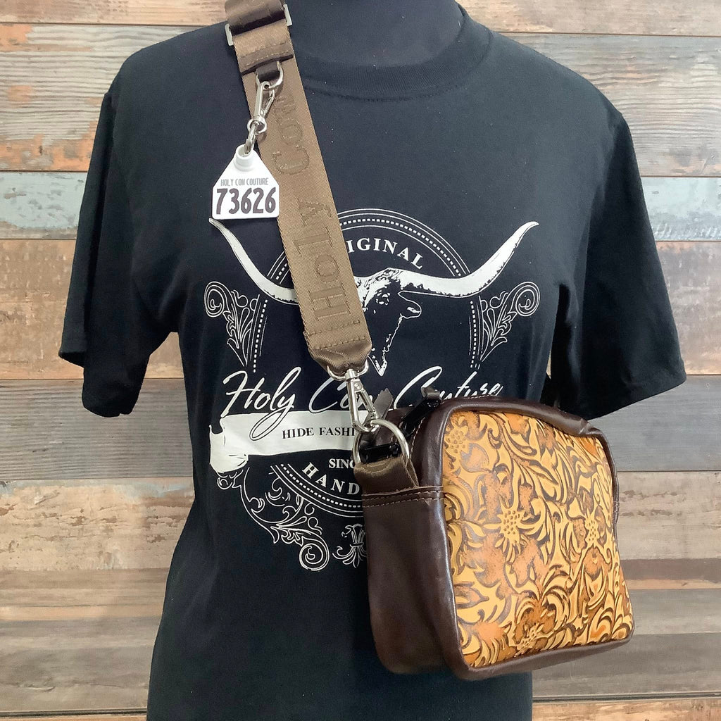 Introducing the Ranch Mama! An upscale version of the classic bum bag, designed for those who appreciate a blend of rustic charm and modern utility. This larger model features a striking cowhide or embossed  panel on the front, framed by our rich leather that speaks to its quality and durability. Its adjustable HCC Sporty strap allows for versatile wear, easily transitioning from a cross-body bag to a waist bag for hands-free convenience. Whether you're gearing up for a day in the city or a casual outing, the Ranch Mama bag offers ample space for essentials, combining style with practicality in a uniquely fashionable way.