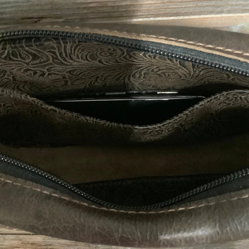 Introducing the Ranch Mama! An upscale version of the classic bum bag, designed for those who appreciate a blend of rustic charm and modern utility. This larger model features a striking cowhide or embossed panel on the front, framed by our rich leather that speaks to its quality and durability. Its adjustable HCC Sporty strap allows for versatile wear, easily transitioning from a cross-body bag to a waist bag for hands-free convenience. Whether you're gearing up for a day in the city or a casual outing, the Ranch Mama bag offers ample space for essentials, combining style with practicality in a uniquely fashionable way.