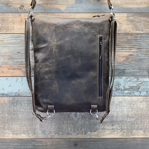 You can use it in different ways:  its two 48" backpack straps and 23" shoulder straps let you wear it as either a backpack or a crossbody, leaving your hands free. With removable straps, it can easily convert into a purse or sling. Its back has a vertical zipper compartment, which can be used as a concealed carry pocket, and its interior features two additional pockets.