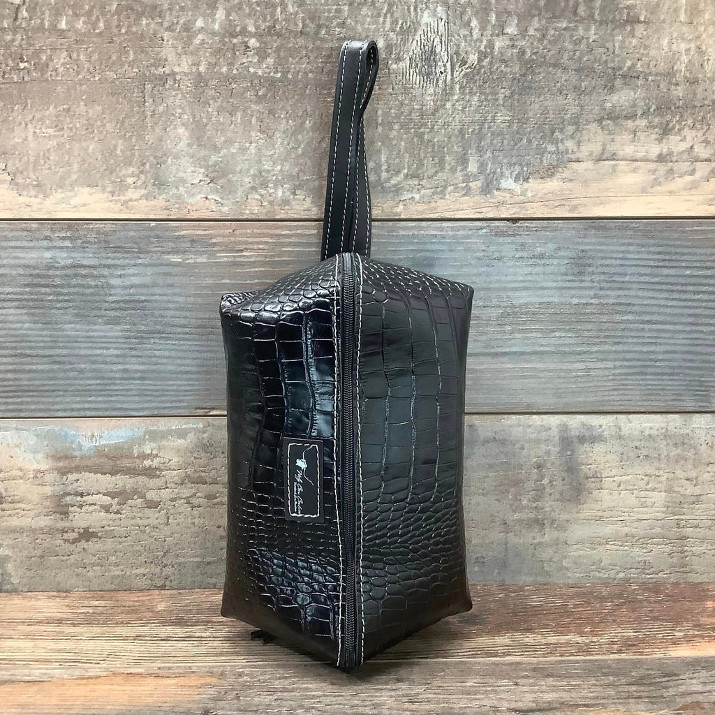 Our unisex Buckaroo pouch was designed with both men and women in mind. It can be used as either a toiletry bag or make-up kit – it’s the perfect size for both. Its large lay flat design fully opens to an 8"x 8" square base, so all your belongings are in full view and easy to access. Super practical, its small leather side handle allows you to grab and go with ease, and its wipe clean lining helps protect against unexpected leaks and spills. You’ll never want to go on a trip without it.