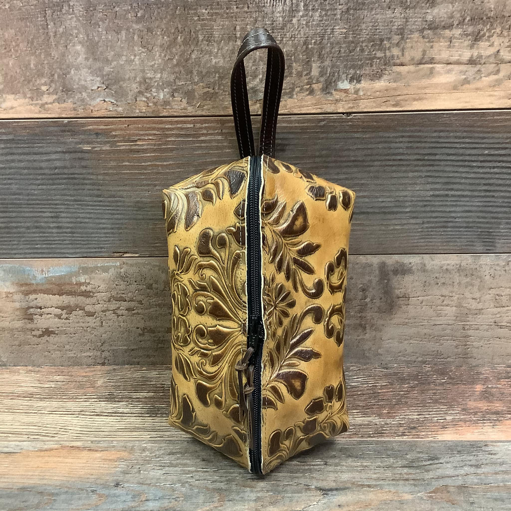 Our Buckaroo is perfect for the woman on the go! This makeup/toiletry bag is designed with large compartment that can fully open to an 8"x 8" square base, so you can fully access all your belongings in full view. Super practical, a small handle sits to the side so you can grab and go easily, while wipe clean lining helps protect against unexpected leaks. All you need to do is decide what to put inside.