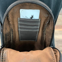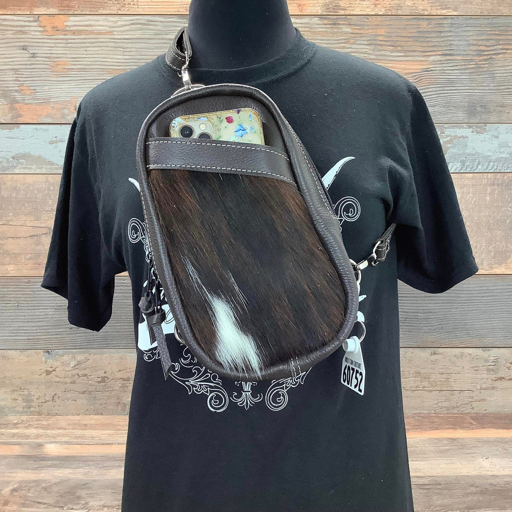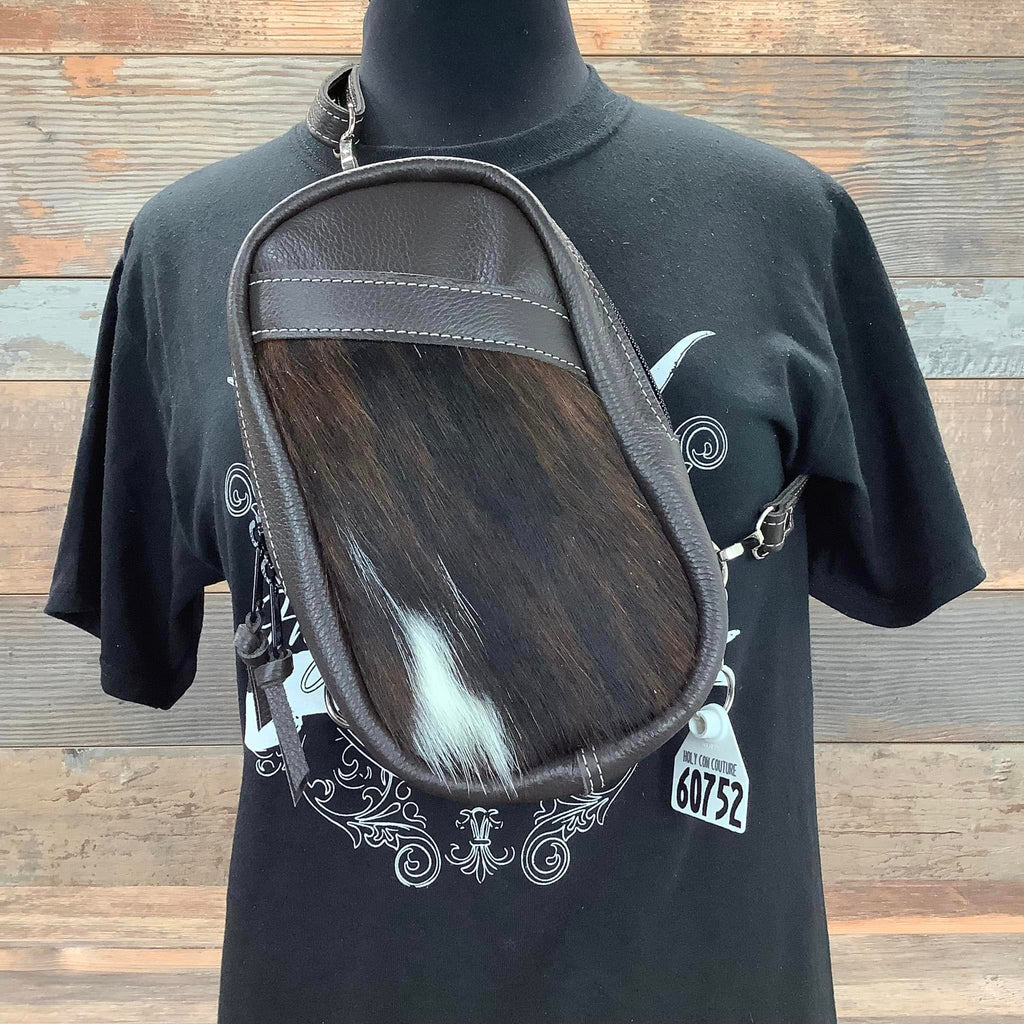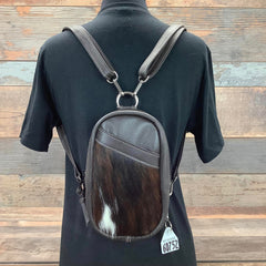 The Bum Pack!  The chic and versatile bag for the fashion-conscious cowgirl on the go!  The Bum Pack features a sleek design with a front panel crafted from genuine cowhide or genuine embossed leather.  The surrounding leather in rich colors adds a touch of sophistication and durability. Its compact size makes it perfect for carrying essentials like your phone, wallet, and keys, while keeping your hands free. The adjustable leather straps offer comfort and convenience, allowing you to wear it as a backpack, over your shoulder or as a crossbody.  Whether you're navigating the rodeo, a music festival or exploring the city, the Bum Pack combines practicality with an edge of rustic elegance.
