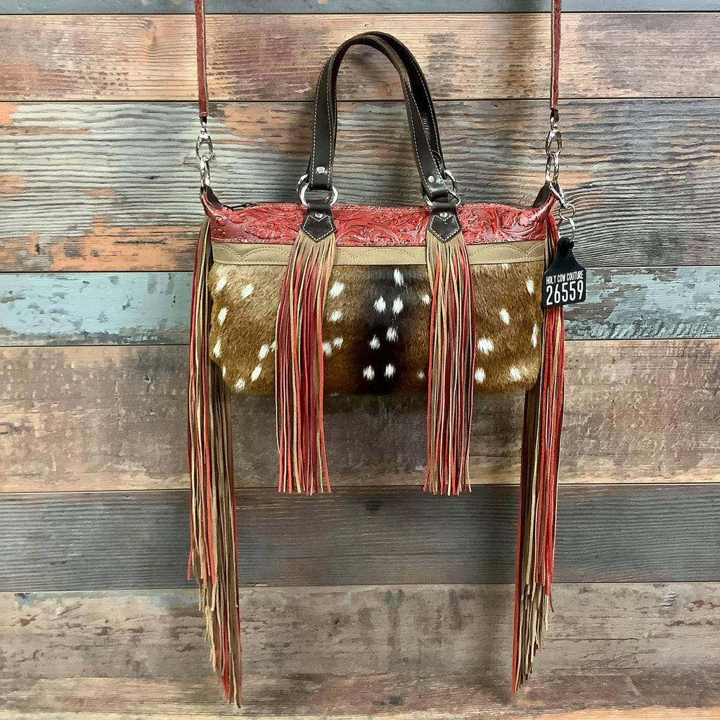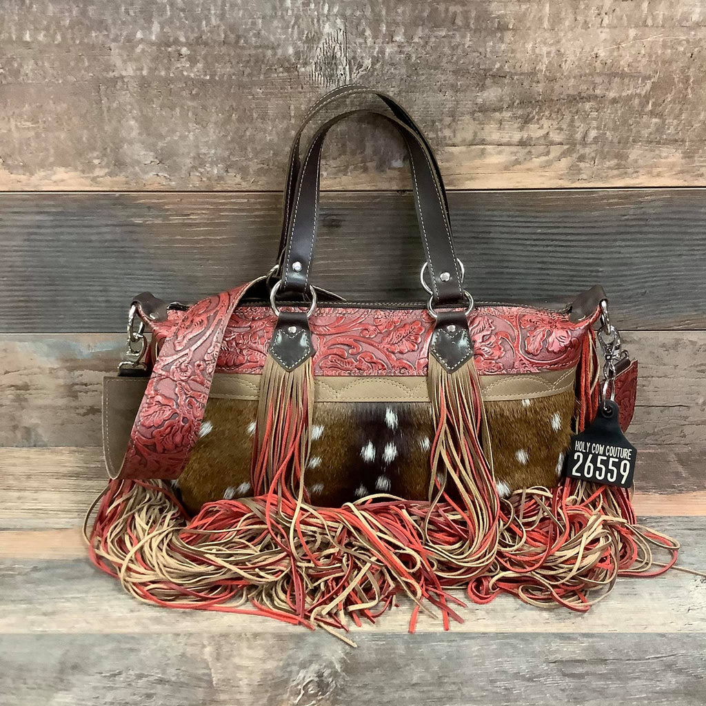 The crew over at HCC killed again with this gorgeous bag!! I love the crossover because it's a full sized bag without being too bulky. The craftsmanship on this bag is unbelievable. My favorite part is the Silver fringe.