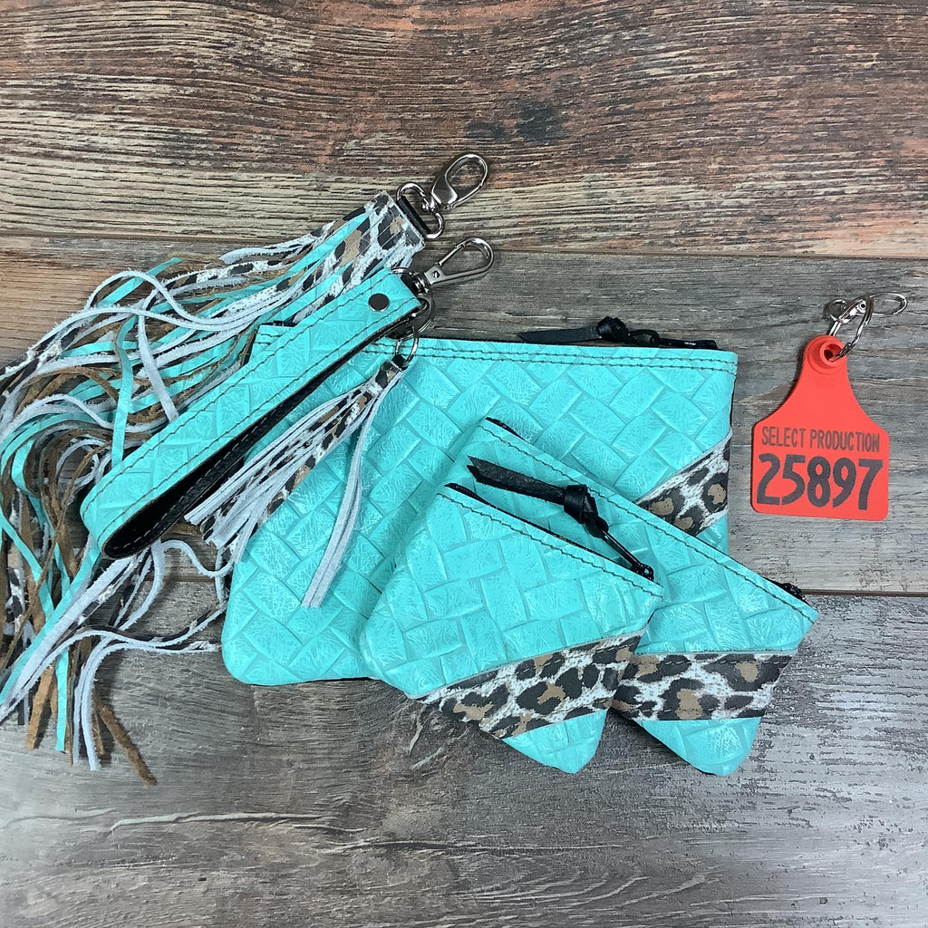 Our incredible design and production team hand cuts and sews each bag in our California workshop. We use top-quality genuine leather and hair on hide. The items you see in this picture will ship right to your doorstep!
