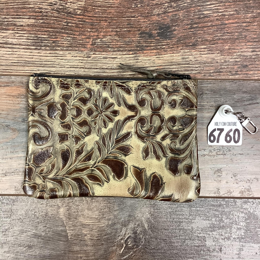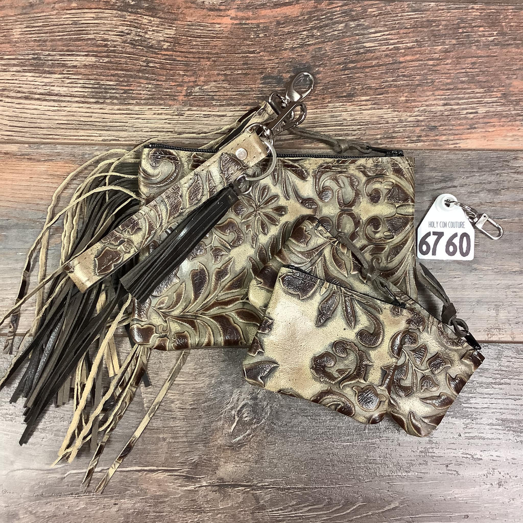 A favorite of our HCC customers, our Matchtastic sets are a beautiful matching set to complete your purse or tote collection.  The fronts are a signature look with genuine embossed leather and genuine premium solid leather on the back.  The pouches are compete with a zipper closer and leather pull.