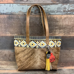 Meet the bag that’s ready for those trips to the farmer’s market, and daily commutes to the office. Handmade from natural leather and cowhide, its slouchy silhouette is complemented by a beautiful raw suede interior and a 11” handle drop for a comfortable fit on your shoulder. The Weekender is the ideal bag to complete your western Boho look!