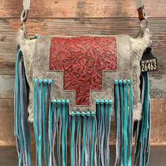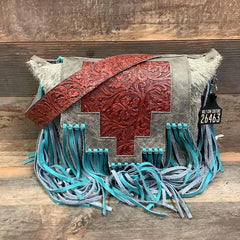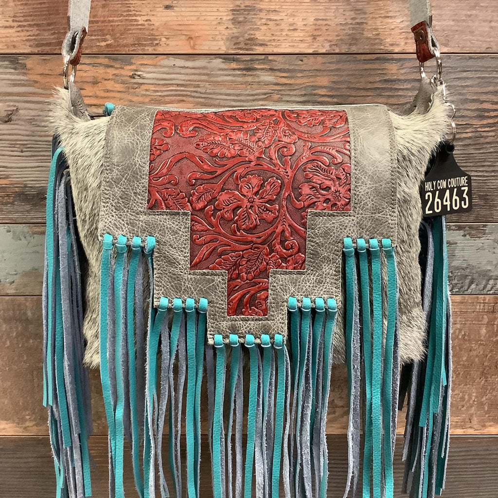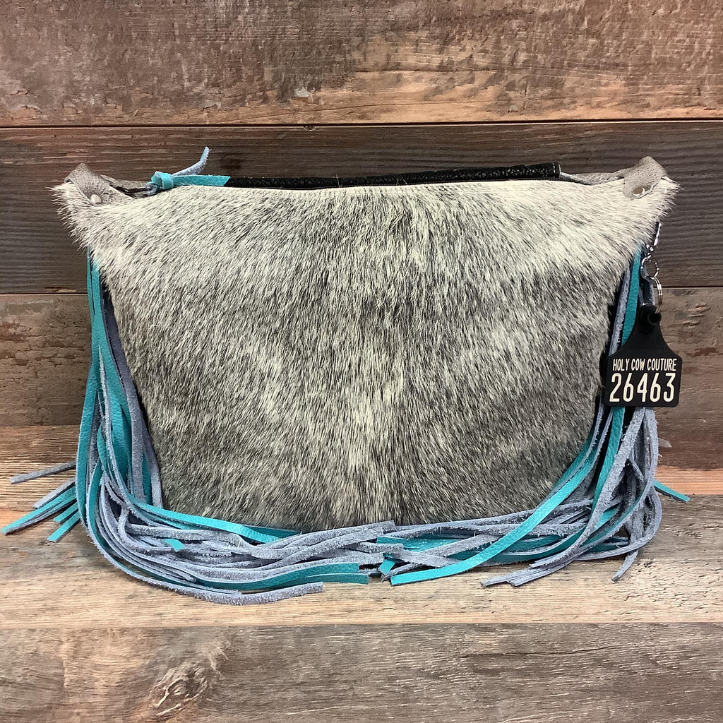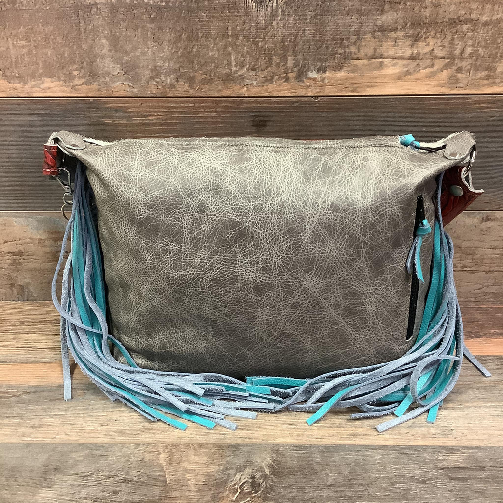 Our incredible design team hand cuts and sews each bag in California and Oklahoma. Each bag is one of a kind with top quality leather and hair on hide hand chosen by our designers. The purse you see in this picture will ship right to your doorstep!