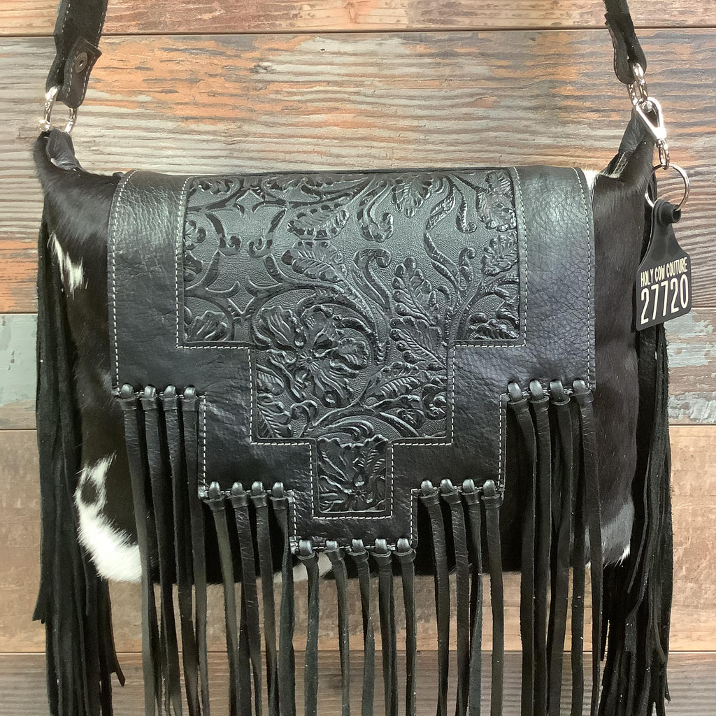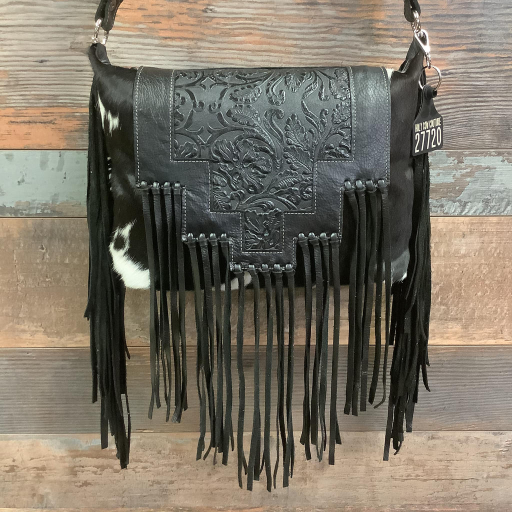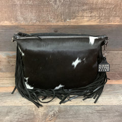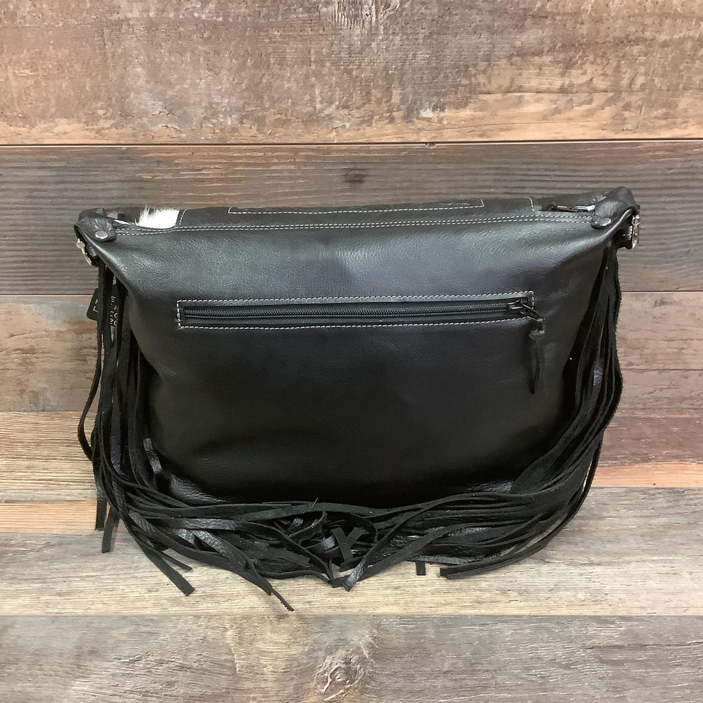 Our incredible design team hand cuts and sews each bag in California and Oklahoma. Each bag is one of a kind with top quality leather and hair on hide hand chosen by our designers. The purse you see in this picture will ship right to your doorstep!