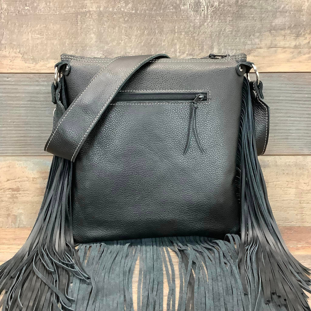 We offer a dazzling selection of crossbody bags with a long strap, so you can wear it across your body. Versatile enough for any occasion, they are the perfect style for city shopping because they are designed to keep your essentials close by. The Crossbody is a best seller, and for good reason. Each bag in the collection has a classic trapeze shape and fringe, with a beautiful accent flap and easy-access top zipper closer. Best of all, the Crossbody has a gorgeous 2” wide x 30” long embossed leather strap that matches the trim, and an additional removable 48” strap.