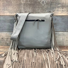 We offer a dazzling selection of crossbody bags with a long strap, so you can wear it across your body. Versatile enough for any occasion, they are the perfect style for city shopping because they are designed to keep your essentials close by. The Crossbody is a best seller, and for good reason. Each bag in the collection has a classic trapeze shape and fringe, with a beautiful accent flap and easy-access top zipper closer. Best of all, the Crossbody has a gorgeous 2” wide x 30” long embossed leather strap that matches the trim, and an additional removable 48” strap.