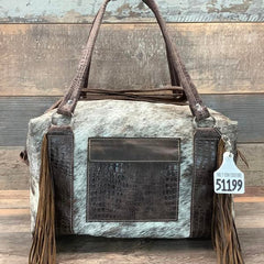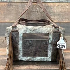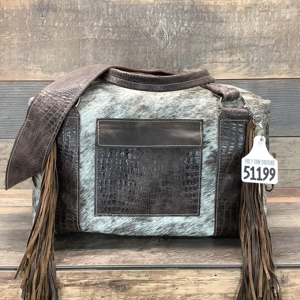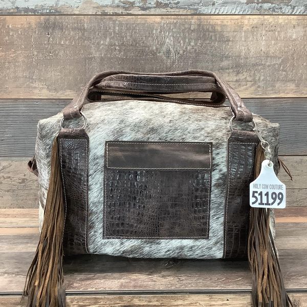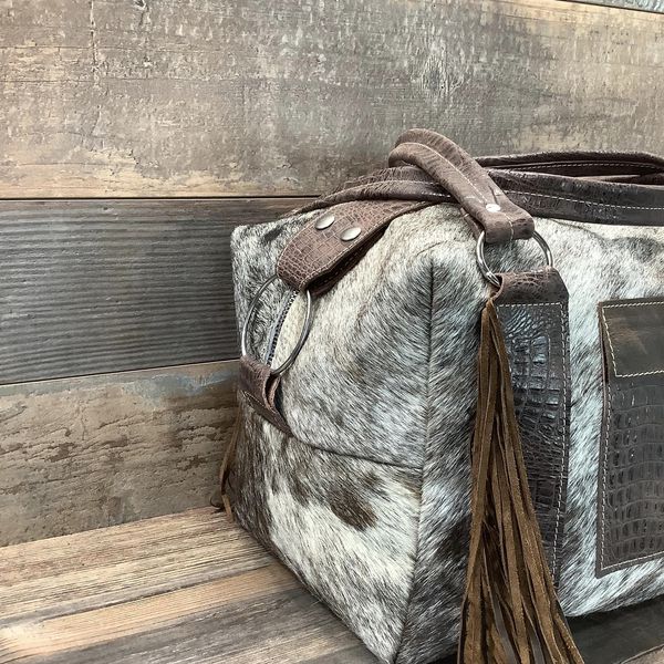 Our Denton Duffle is perfect for a flight carry-on, overnight, rodeo, or gym bag. It's designed with two sturdy strap choices, a long removable shoulder strap with suede underneath, for a non-slip function, and grab and go handles.  This duffle is lined with fabric and has 2 interior pockets.  There are 1 or 2 exterior zipper closer pockets for convenient quick access.