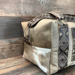 Our Denton Duffle is perfect for a flight carry-on, overnight, rodeo, or gym bag. It's designed with two sturdy strap choices, a long removable shoulder strap with suede underneath, for a non-slip function, and grab and go handles.  This duffle is lined with fabric and has 2 interior pockets.  There are 1 or 2 exterior zipper closer pockets for convenient quick access.