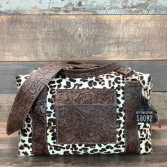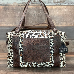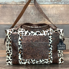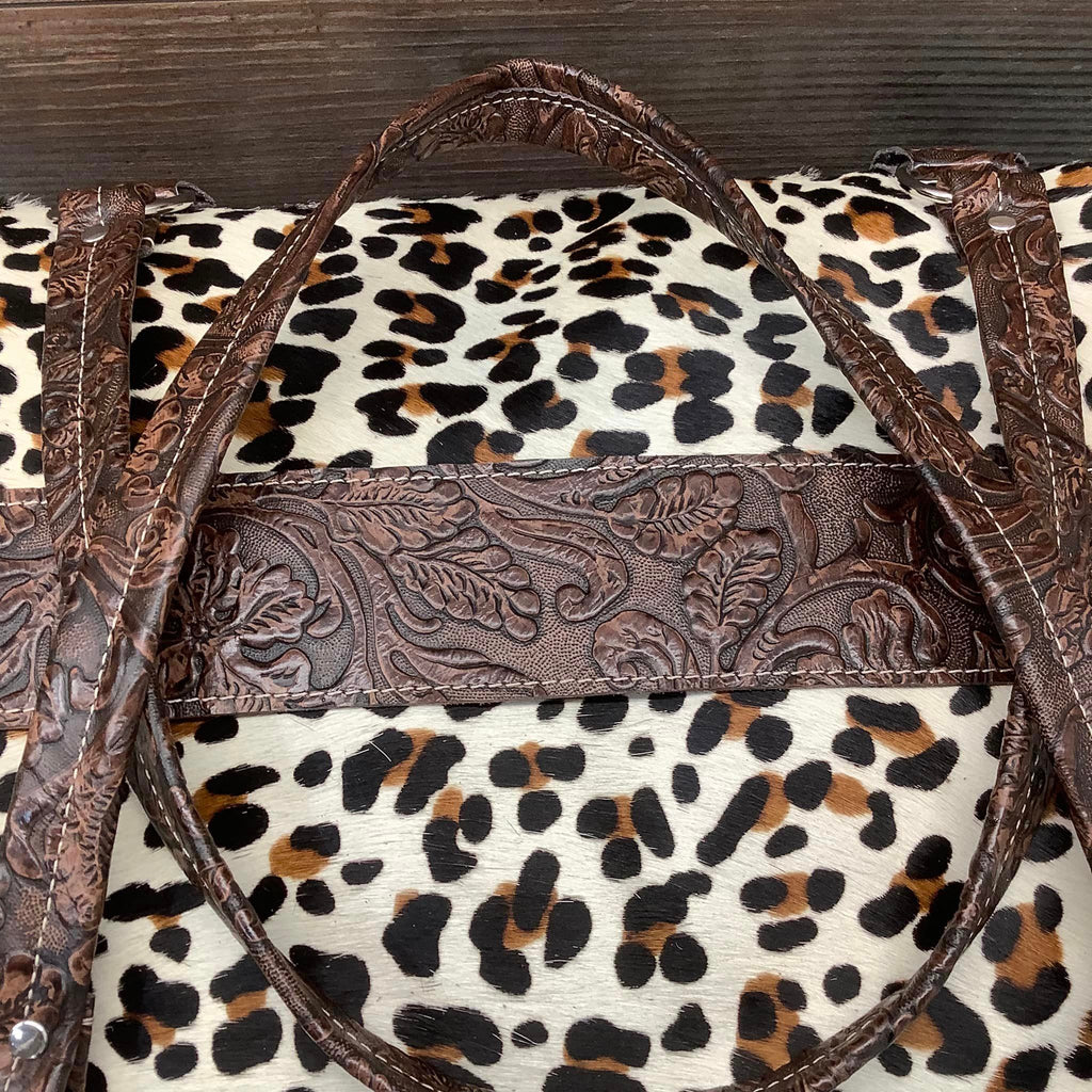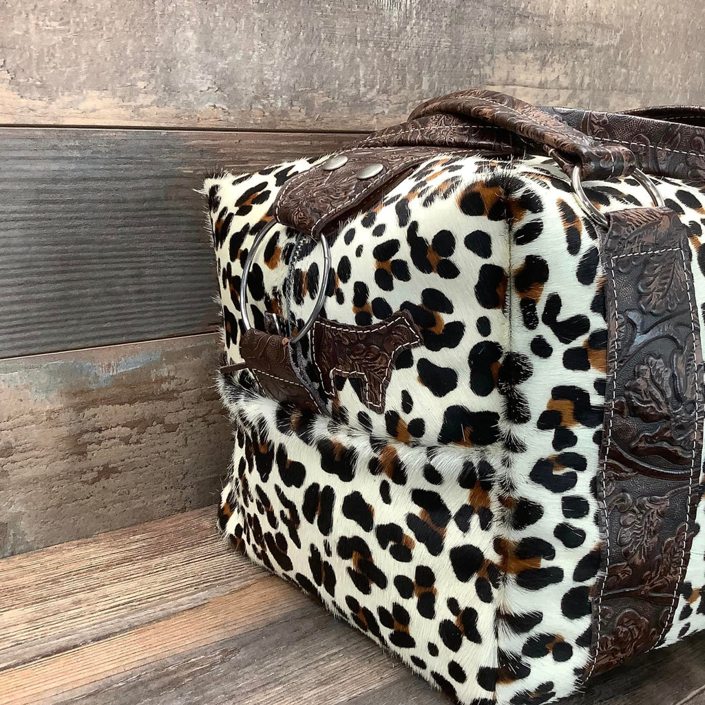 Our Denton Duffle is perfect for a flight carry-on, overnight, rodeo, or gym bag. It's designed with two sturdy strap choices, a long removable shoulder strap with suede underneath, for a non-slip function, and grab and go handles.  This duffle is lined with fabric and has 2 interior pockets.  There are 1 or 2 exterior zipper closer pockets for convenient quick access.