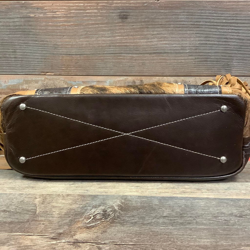 Our Designer Crossover is the best of both worlds - a cross between our popular Designer and Mini Designer. Designed with a wide opening that gives you easy access to the bag’s contents, it also features 4 interior pockets and a back exterior vertical zipper compartment for your conceal carry or essentials. A stiff bottom adds structure, and the removable suede-lined shoulder strap won’t slip off your shoulder. Each one-of-a-kind bag in the collection is crafted from a dazzling combination of hair-on, full-grain and embossed leathers and other unique details.
