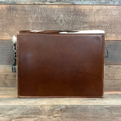 Although we call it a Diaper Bag, this versatile shoulder/tote bag has many uses. Throw it over your shoulder for hands-free access to your computer or camera, or use it as a tote to look smart and stylish for your business meeting. Its flap is made from premium hair on hide, and its 36" long x 2.5" wide shoulder strap is beautifully embossed and tipped leather for additional splash and lined with suede to prevent slipping.