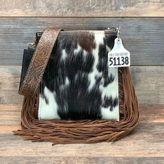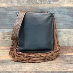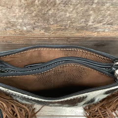 The Double Barrel is like the sister to our sling shot with more room and compartments for your belongs! It features 2 zipper top pockets with a center leather opening (pocket) for easy access to your phone, receipts, money etc..