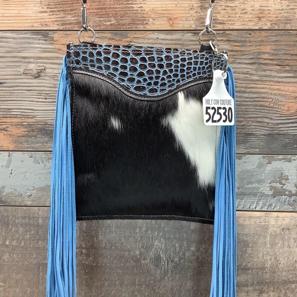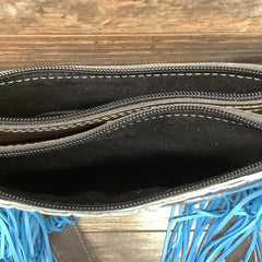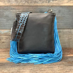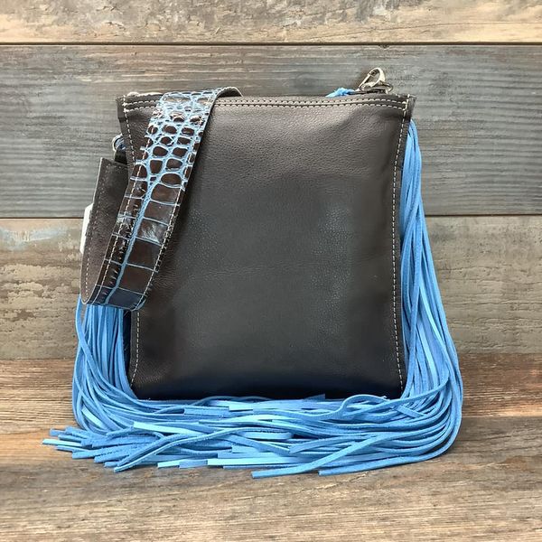 The Double Barrel is like the sister to our sling shot with more room and compartments for your belongs! It features 2 zipper top pockets with a center leather opening (pocket) for easy access to your phone, receipts, money etc..