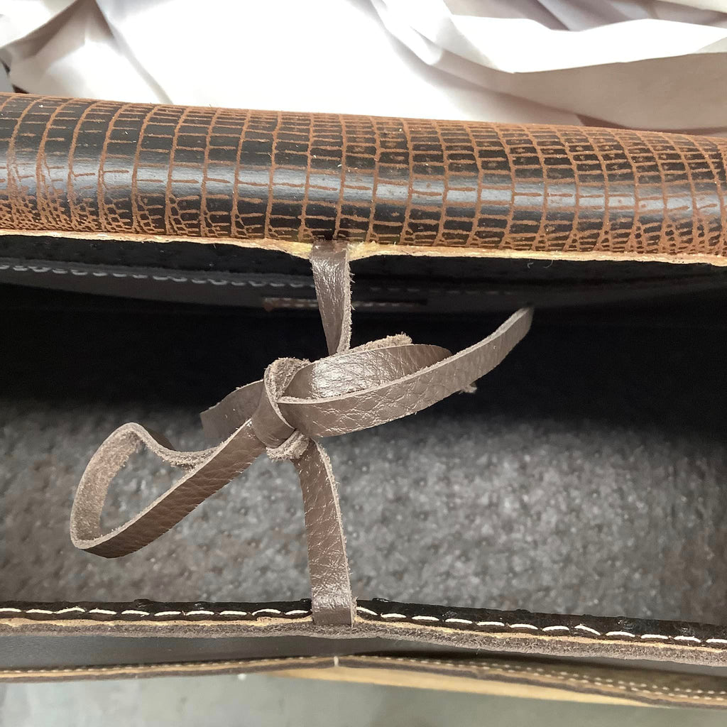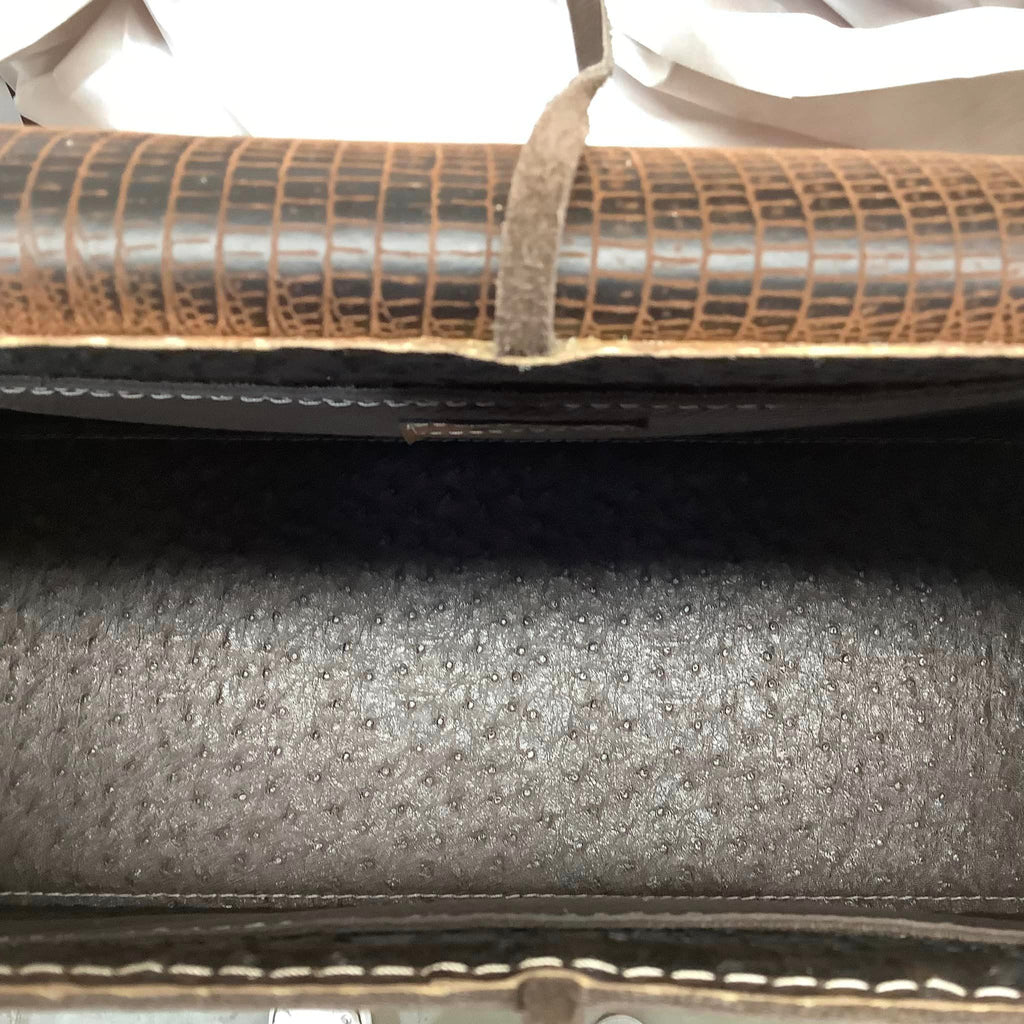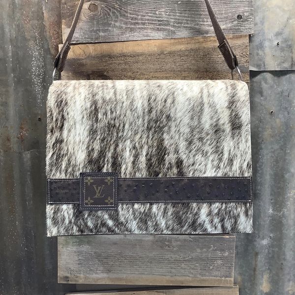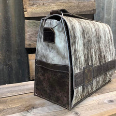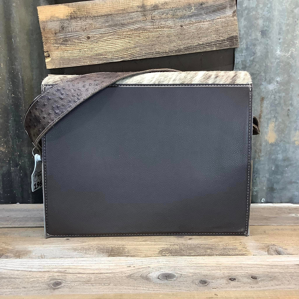 This classic HCC bag is known as our Diaper Bag, although, this bag has many uses. An amazing fashionable tote to use as a diaper bag, camera bag, school bag, or business bag. It is comfortable to carry without compromising your style. It has a beautiful premium hair on hide flap.The long shoulder strap is 36” long and 2.5” wide embossed leather for beauty and style, suede on the underneath for a strong grip for non-ship function .  This bag has 2 exterior front pockets and 2 exterior side pockets and 4 interior pockets. Our stylish faux leather lines the interior for easy clean up. The front, back, and bottom has stiffener to keep the bag upright and structured.
