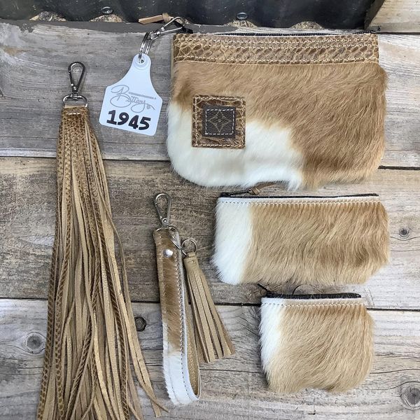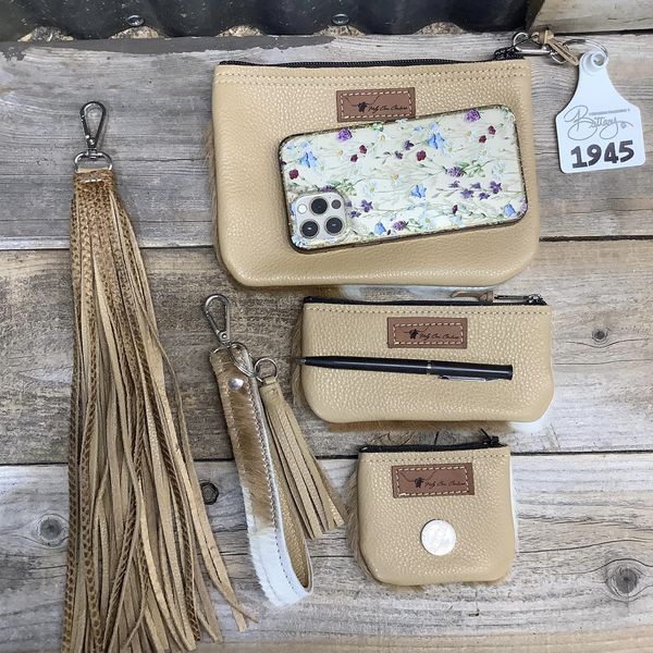 A favorite of our HCC customers, our Matchtastic sets are beautiful matching set to complete your purse or tote collection. The fronts are a signature look with genuine embossed leather and genuine premium solid leather on the back. The pouches are competed with a zipper closer and leather pull.
