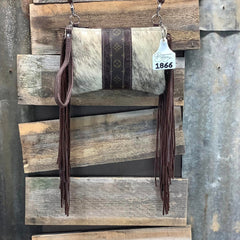 We offer a dazzling selection of crossbody bags with a long strap, so you can wear it across your body. Versatile enough for any occasion, they are the perfect style for city shopping because they are designed to keep your essentials close by. This fringed compact bag, crafted from genuine hair-on hide, is at the ready to brighten up your look and let you step out in style. Its fabric-lined interior is designed with an interior pocket for securing your valuables. Lightweight, smart and versatile, this bag is small in stature but big in charm.