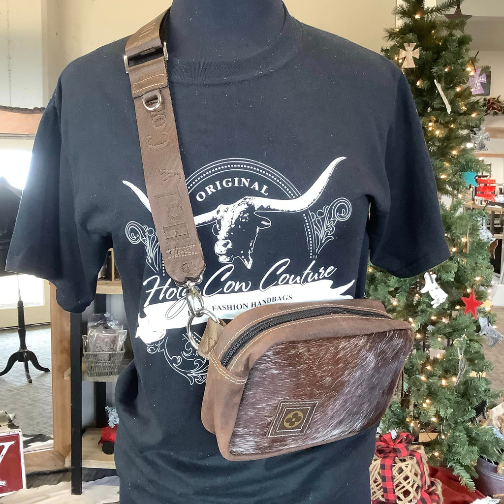 The Western Bum Bag!  With a compact design The Western Bum Bag has the flexibility to be worn as crossbody, on the waist or slung over your shoulder!  Great to be used as a daily carry for all of your daily essentials from your Unisex Wallet to your smart phone.  The Western Bum Bag comes with HCC's signature sporty web strap that is adjustable from lengths 28'' to 43".