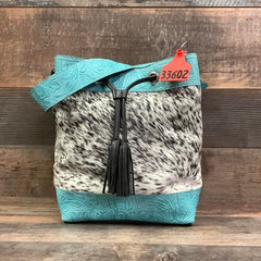 I have been dying for a mini feed bucket purse since 2020. I absolutely loved the style but I wasn’t seeing one I knew I had to have. So I started out with a few other styles and loves the quality and craftsmanship. Then the other week, on a live I got to looking online and I saw the feed bucket I HAD to have! It was all leather and had a distressed look to it. I was a little nervous that it wasn’t a mini but I measure my laptop and decided it was the perfect work bag!