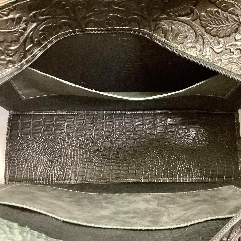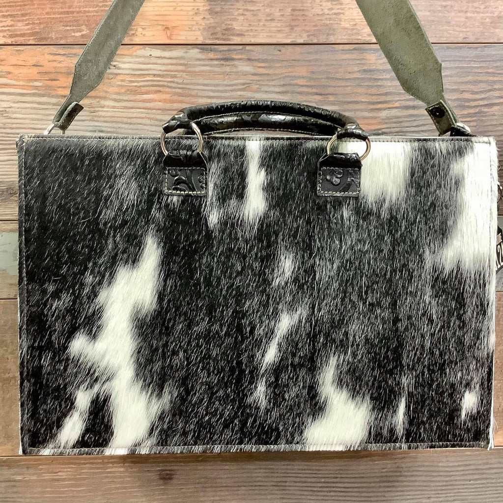 Are you headed out for the day? Our Get Outta Dodge bag is a perfect fit! This tote can be an everyday tote, business bag, laptop carrying case or a diaper bag. The leather handles are long enough to use a shoulder strap for comfortable hassle-free carrying. The front and back of our Dodge Tote are stiff to keep it sturdy and upright when you are in meetings or just want to set it down! There are 2 leather interior pockets and 2 side exterior for quick access. Our faux leather interior makes for easy cleanup.  The bottom and back are constructed of genuine Italian leather.