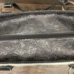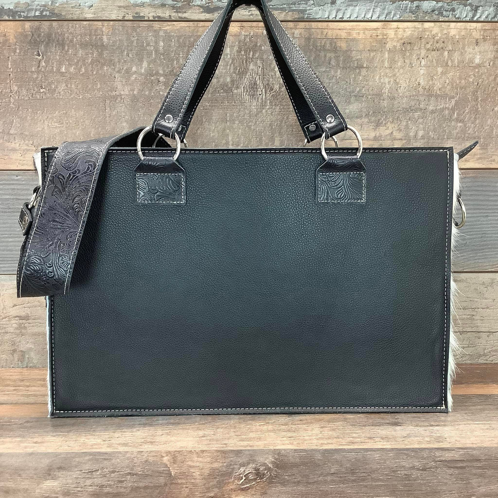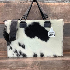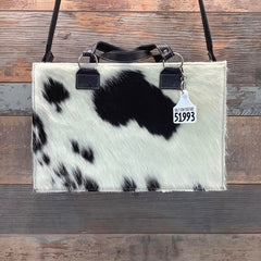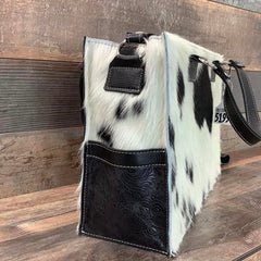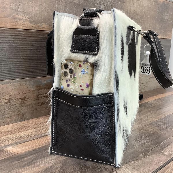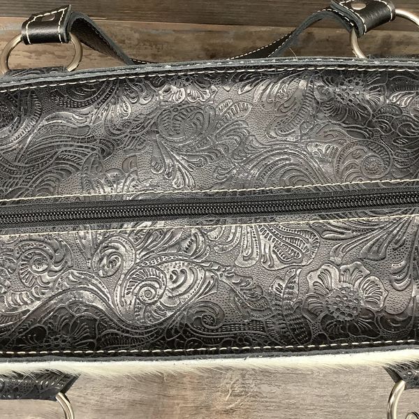 When you need to get out of Dodge quickly, our Get Outta Dodge is ready when you are! This hybrid tote is perfect for a quick overnight getaway, or as a camera, diaper or business bag for daily use, either as tote or shoulder bag. Its sturdy structure keeps it upright when you set it down, and its 2 interior and 2 exterior pockets are ideal for quick access. Its faux leather lining makes for easy clean-up. Inspired by the iconic cowboy-and-western films of the 1900s, it is crafted from natural hair-on hide, and full-grain solid and embossed leather.