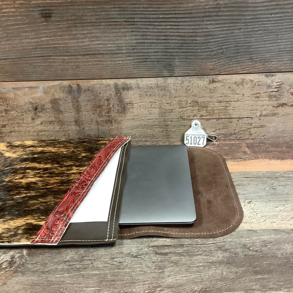 Our hair on hide Computer Sleeve with two suede pouches offers a hip alternative to its traditional counterpart. Super thin and lightweight, it is designed to provide the necessary protection without the bulk. Choose from a selection of sleeves with natural hair on cowhide and decorative leather trim. Simply slide in your laptop and be on your way with confidence and in style.