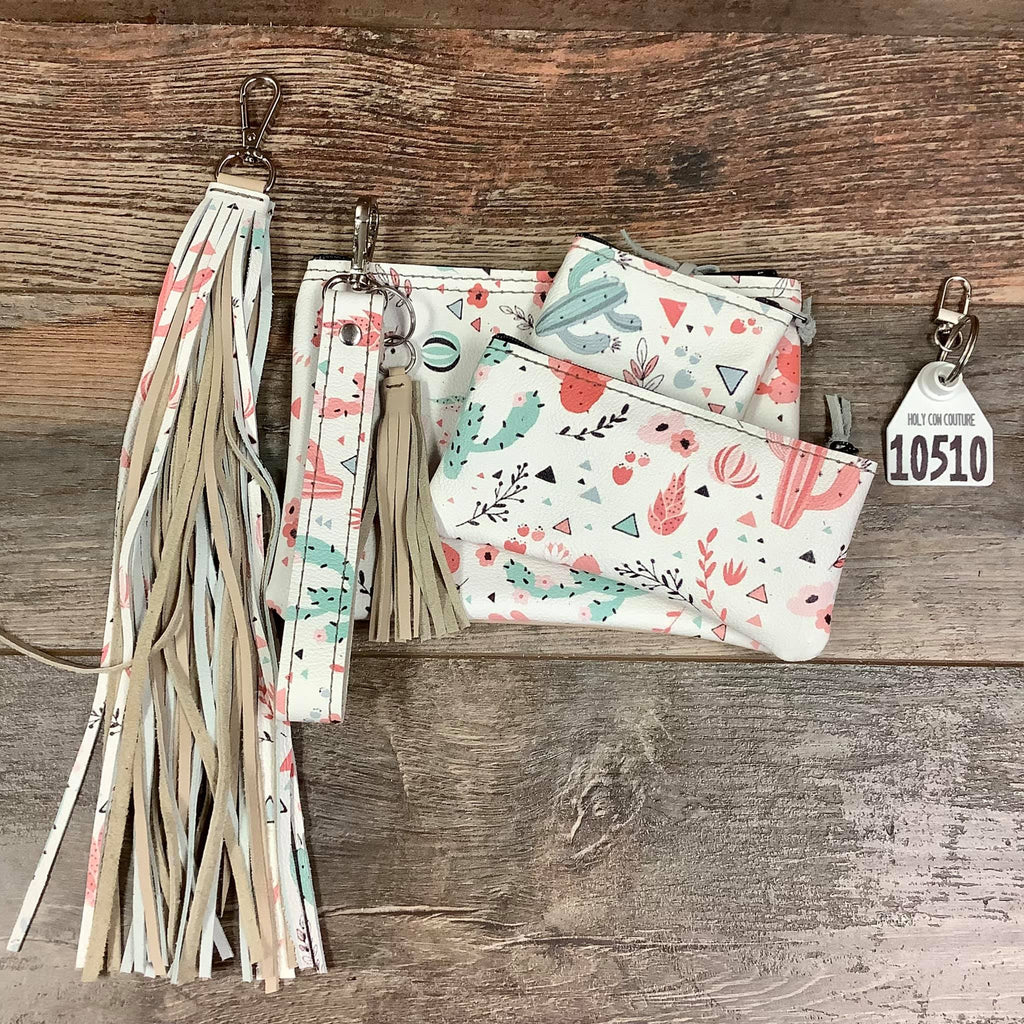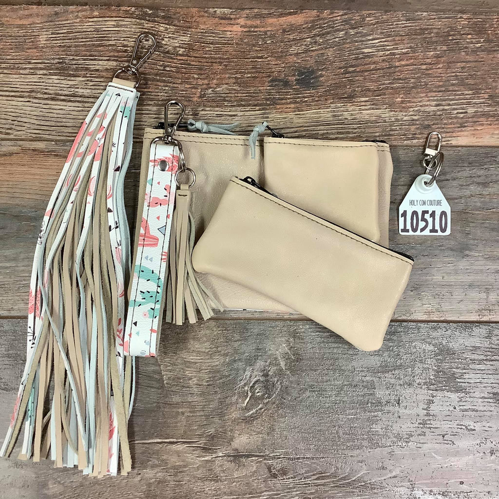 A favorite of our HCC customers, our Matchtastic sets are beautiful matching set to complete your purse or tote collection. The fronts are a signature look with genuine embossed leather and genuine premium solid leather on the back. The pouches are competed with a zipper closer and leather pull.