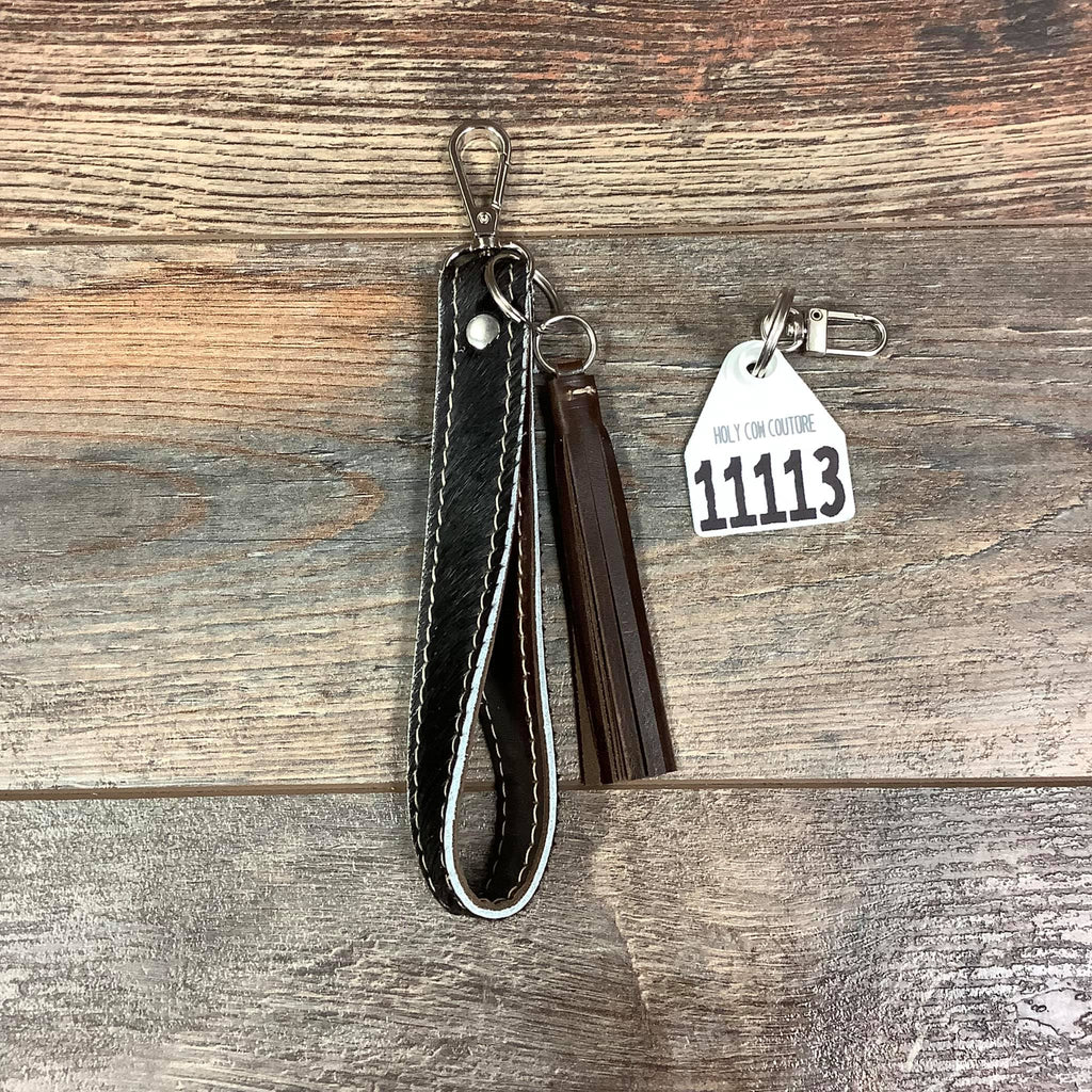 Wristlet Keychain  - 1" wide x 8" long - is made with durable keyring hardware, purse clip and a leather wristlet.  Never lose your keys again with a stylish wristlet and hardware purse clip, this keychain will keep everything together and easy to find.
