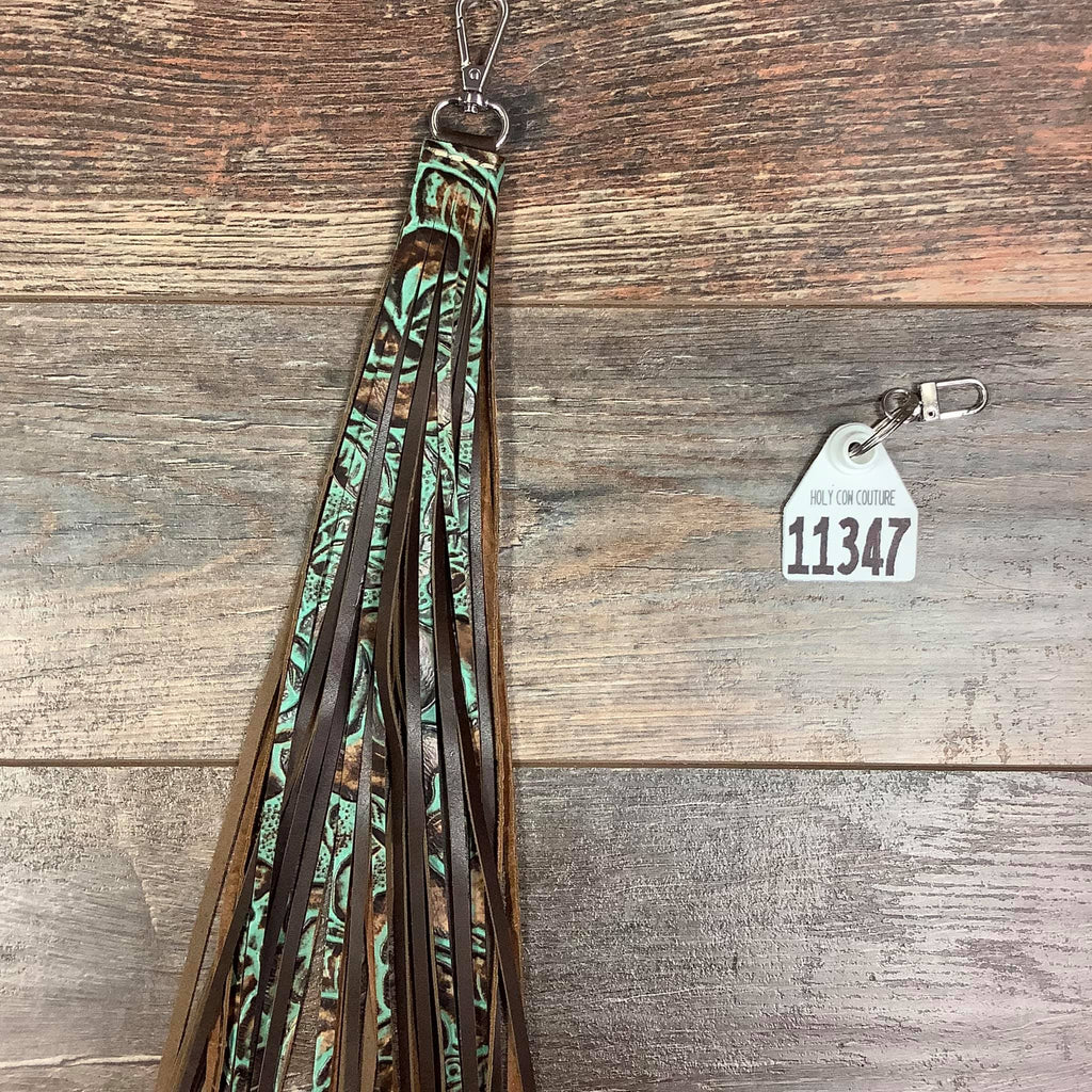 Tassel - 12" long - features genuine leather fringe to match our handbags. A fashionable look to be easily attached and removed to suit what you are wearing or what handbag you want to take with you.