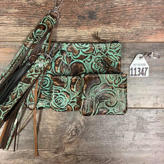 A favorite of our HCC customers, our Matchtastic sets are beautiful matching set to complete your purse or tote collection. The fronts are a signature look with genuine embossed leather and genuine premium solid leather on the back. The pouches are competed with a zipper closer and leather pull.