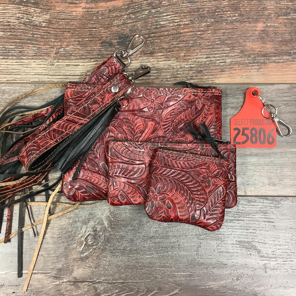 A favorite of our HCC customers, our Matchtastic sets are a beautiful matching set to complete your purse or tote collection.  The fronts are a signature look with genuine embossed leather and genuine premium solid leather on the back.  The pouches are compete with a zipper closer and leather pull.