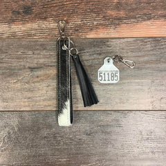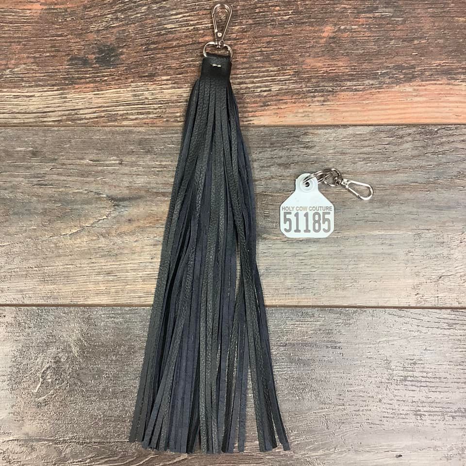 Tassel - 12" long - features genuine leather fringe to match our handbags. A fashionable look to be easily attached and removed to suit what you are wearing or what handbag you want to take with you.