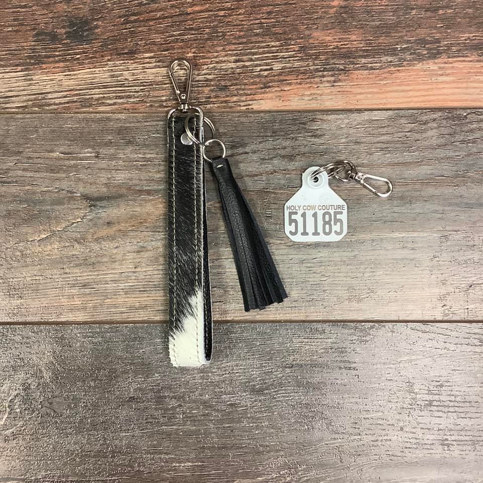 Wristlet Keychain  - 1" wide x 8" long - is made with durable keyring hardware, purse clip and a leather wristlet.  Never lose your keys again with a stylish wristlet and hardware purse clip, this keychain will keep everything together and easy to find.