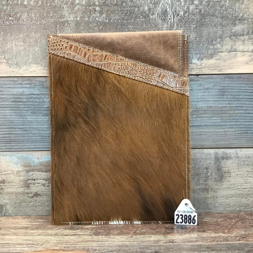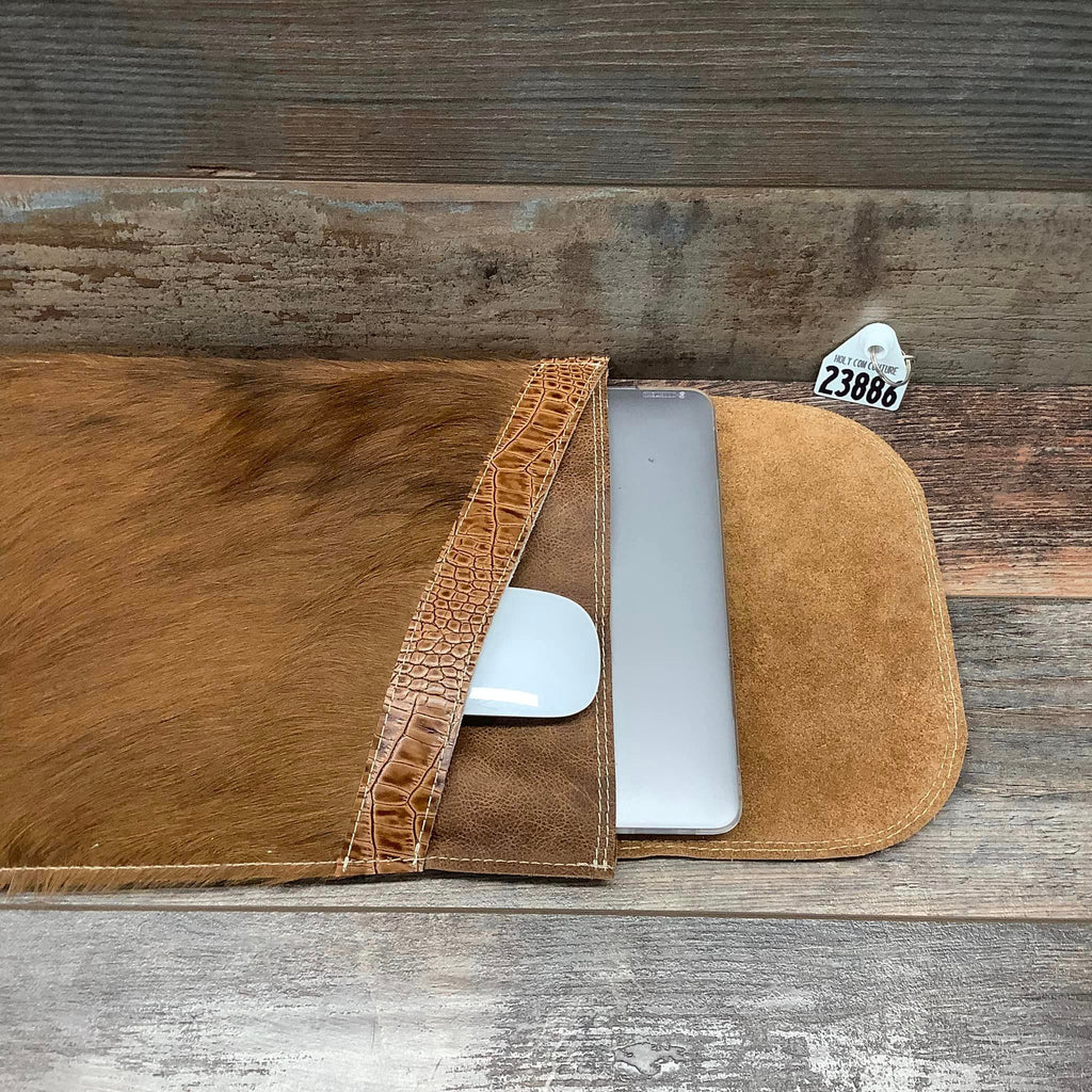 Our hair on hide Computer Sleeve with two suede pouches offers a hip alternative to its traditional counterpart. Super thin and lightweight, it is designed to provide the necessary protection without the bulk. Choose from a selection of sleeves with natural hair on cowhide and decorative leather trim. Simply slide in your laptop and be on your way with confidence and in style.