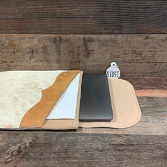 Our hair on hide Computer Sleeve with two suede pouches offers a hip alternative to its traditional counterpart. Super thin and lightweight, it is designed to provide the necessary protection without the bulk. Choose from a selection of sleeves with natural hair on cowhide and decorative leather trim. Simply slide in your laptop and be on your way with confidence and in style.