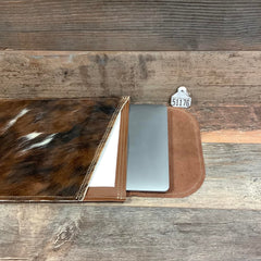 Our hair on hide Computer Sleeve with two suede pouches offers a hip alternative to its traditional counterpart. Super thin and lightweight, it is designed to provide the necessary protection without the bulk. Choose from a selection of sleeves with natural hair on cowhide and decorative leather trim. Simply slide in your laptop and be on your way with confidence and in style.