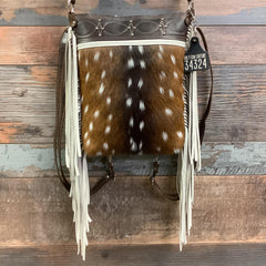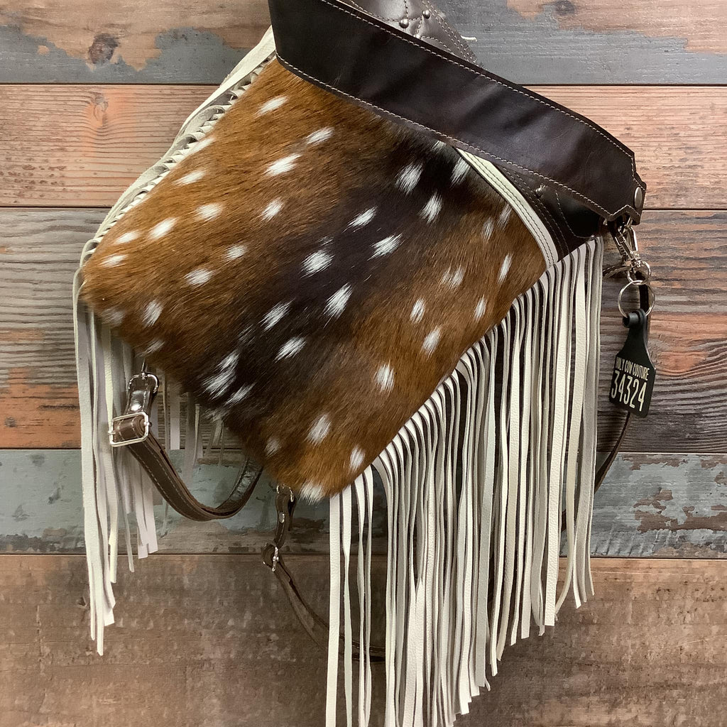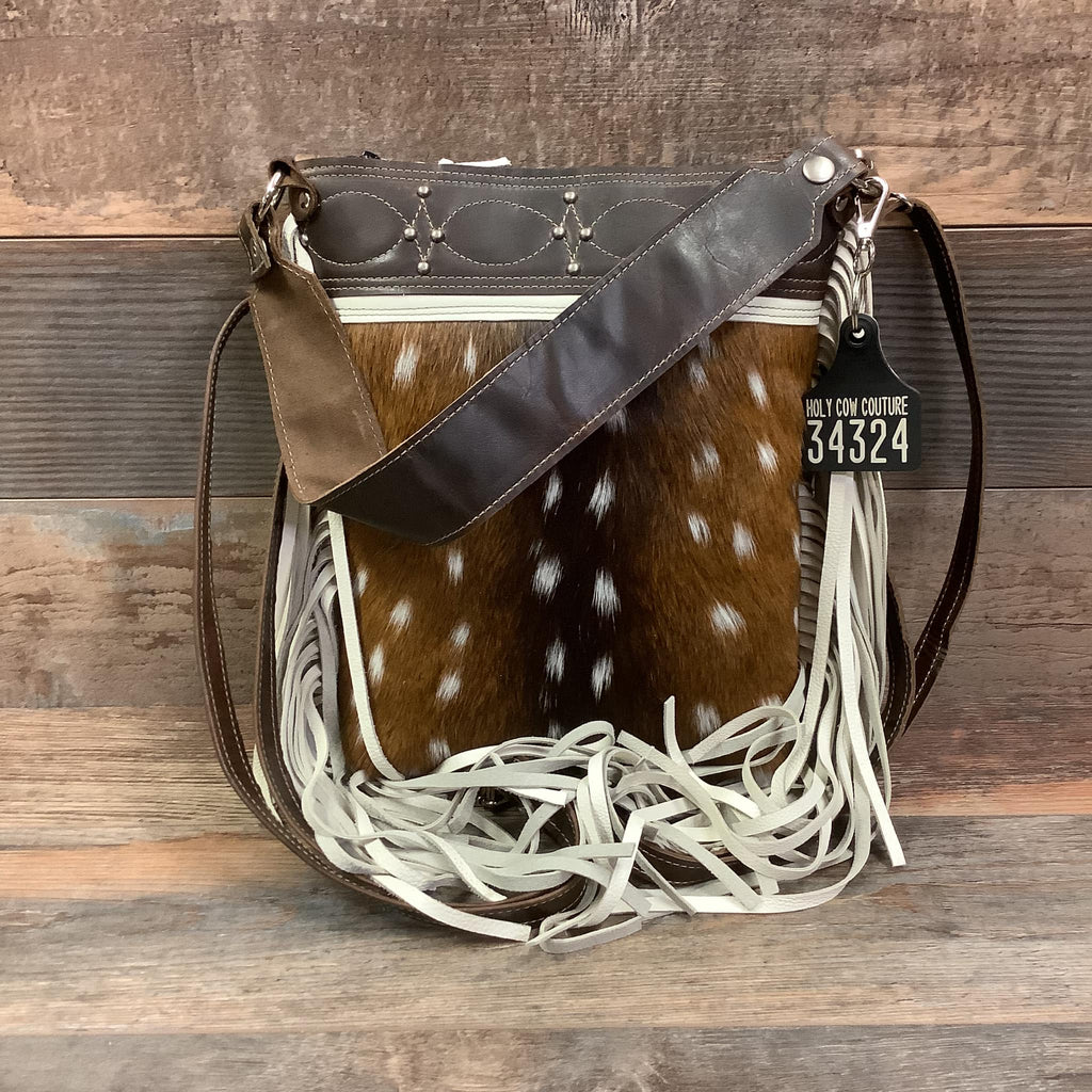 So most of the bags in my herd are not fringed, with that being said, thought I would take the leap with fringe and I am so glad I did!! She is a dark beauty, perfect size, (things are not lost in the bottom of the bag) , love all of the functionality this bag has with the caring options. Christy stepped in and helped me out with a strap change on the bag, communication was excellent 💕 As always thanks to the Holy Cow Crew for all of the hard work they all do to keep the herd in beautiful bags and accessories 🤩❤️