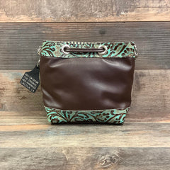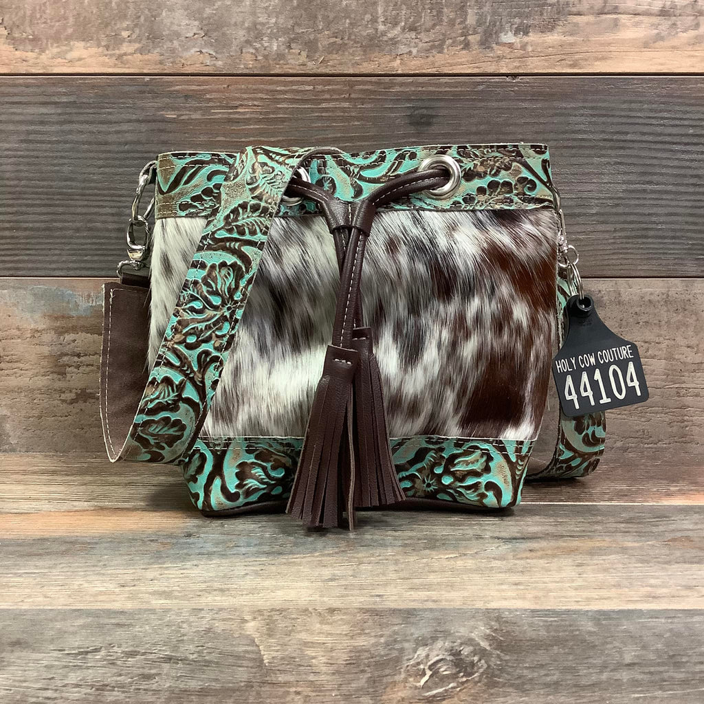 Our "Mini" Feed Bucket is a smaller size bucket purse that hold your essentials plus more miscellaneous necessities!  Our HCC Bandit Wallet fits perfectly in this bag. This fashionable small bucket purse can be worn open for easy use and cinched up for security with the leather drawstring. You can fill this bag to the brim or carry a few items. A comfortable shoulder strap has a suede lining bottom for a non-slip shoulder design.