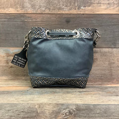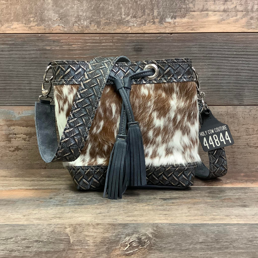 Our "Mini" Feed Bucket is a smaller size bucket purse that hold your essentials plus more miscellaneous necessities!  Our HCC Bandit Wallet fits perfectly in this bag. This fashionable small bucket purse can be worn open for easy use and cinched up for security with the leather drawstring. You can fill this bag to the brim or carry a few items. A comfortable shoulder strap has a suede lining bottom for a non-slip shoulder design.