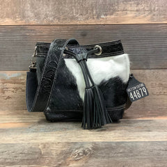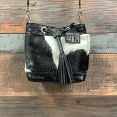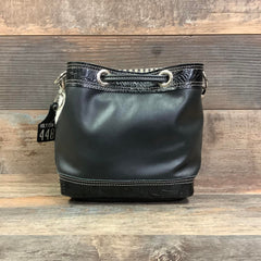 Our "Mini" Feed Bucket is a smaller size bucket purse that hold your essentials plus more miscellaneous necessities!  Our HCC Bandit Wallet fits perfectly in this bag. This fashionable small bucket purse can be worn open for easy use and cinched up for security with the leather drawstring. You can fill this bag to the brim or carry a few items. A comfortable shoulder strap has a suede lining bottom for a non-slip shoulder design.