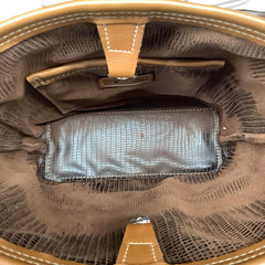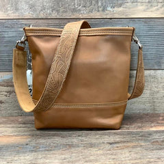 The Mini Messenger is a classic messenger bag with a cowgirl spin. This softly structured bucket bag is a great size for everyday use, and casual enough to take just about anywhere. It is lined with a soft flocked fabric and has an interior pocket for convenience. Made with natural hair-on hide and premium full-grain leather, each bag in the series has unique embossed leather trim with matching shoulder strap. Check out the classy bolero tie detail on some of the models in this stunning collection.