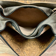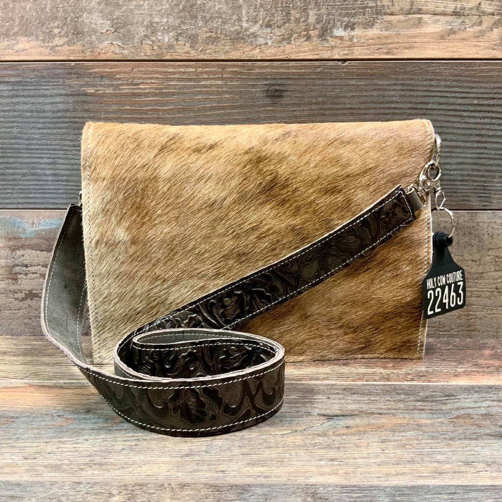 The Oregon Trail is our newest addition to the HCC family. This handy crossbody is based on one of our most popular handbags, the Pony Express!  We designed the Oregon Trail to have three pouches with a larger design overall. The first two pouches have a zipper closure to keep your things secure. The back of this bag has an open sleeve pocket, perfect for your phone, keys, or other items you need to get to quickly!  We have added stiffener to each of the 3 pouches to give this bag more structure. The leather flap is designed with fashion in mind along with keeping your things safe even if you stuff it full!  The crossbody strap is 1" wide made with matching smooth leather.  We use premium quality leather and hair on hide on all our bags.
