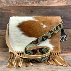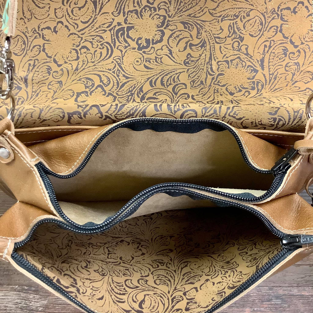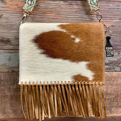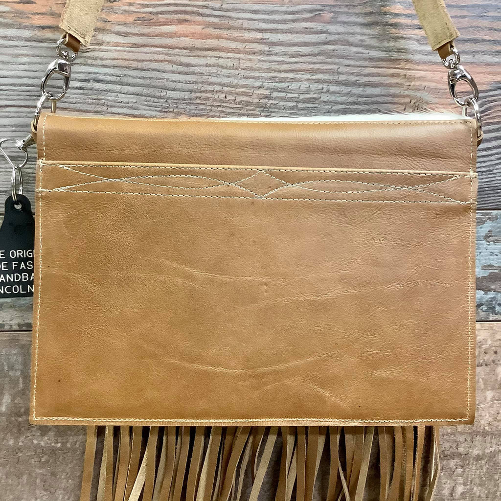 The Oregon Trail is our newest addition to the HCC family. This handy crossbody is based on one of our most popular handbags, the Pony Express!  We designed the Oregon Trail to have three pouches with a larger design overall. The first two pouches have a zipper closure to keep your things secure. The back of this bag has an open sleeve pocket, perfect for your phone, keys, or other items you need to get to quickly!  We have added stiffener to each of the 3 pouches to give this bag more structure. The leather flap is designed with fashion in mind along with keeping your things safe even if you stuff it full!  The crossbody strap is 1" wide made with matching smooth leather.  We use premium quality leather and hair on hide on all our bags.