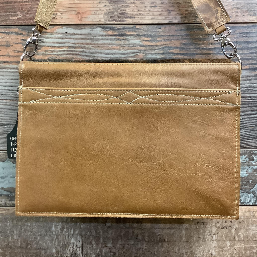 The Oregon Trail is our newest addition to the HCC family. This handy crossbody is based on one of our most popular handbags, the Pony Express!  We designed the Oregon Trail to have three pouches with a larger design overall. The first two pouches have a zipper closure to keep your things secure. The back of this bag has an open sleeve pocket, perfect for your phone, keys, or other items you need to get to quickly!  We have added stiffener to each of the 3 pouches to give this bag more structure. The leather flap is designed with fashion in mind along with keeping your things safe even if you stuff it full!  The crossbody strap is 1" wide made with matching smooth leather.  We use premium quality leather and hair on hide on all our bags.