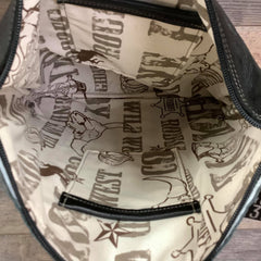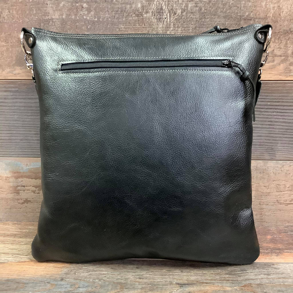 Our Outlaw is the perfect fashion-forward hands-free bag. This large bag is perfect for keeping your essentials safe when you're on the move with top zipper closure. It comes with a removable leather strap. The back has genuine Italian leather with a zipper pocket for easy access to your keys and cell phone.